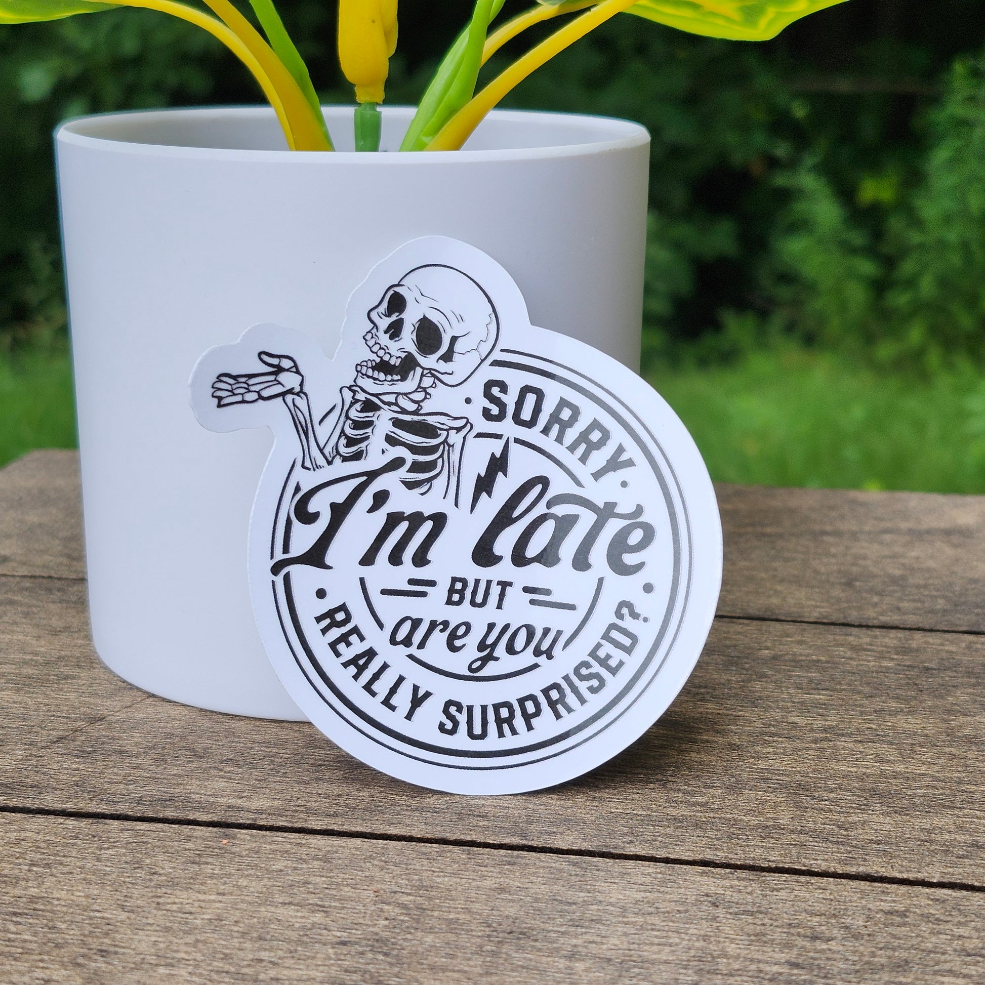 ๐ "Sorry Iโm Late But Are You Really Surprised?" Waterproof Vinyl Sticker