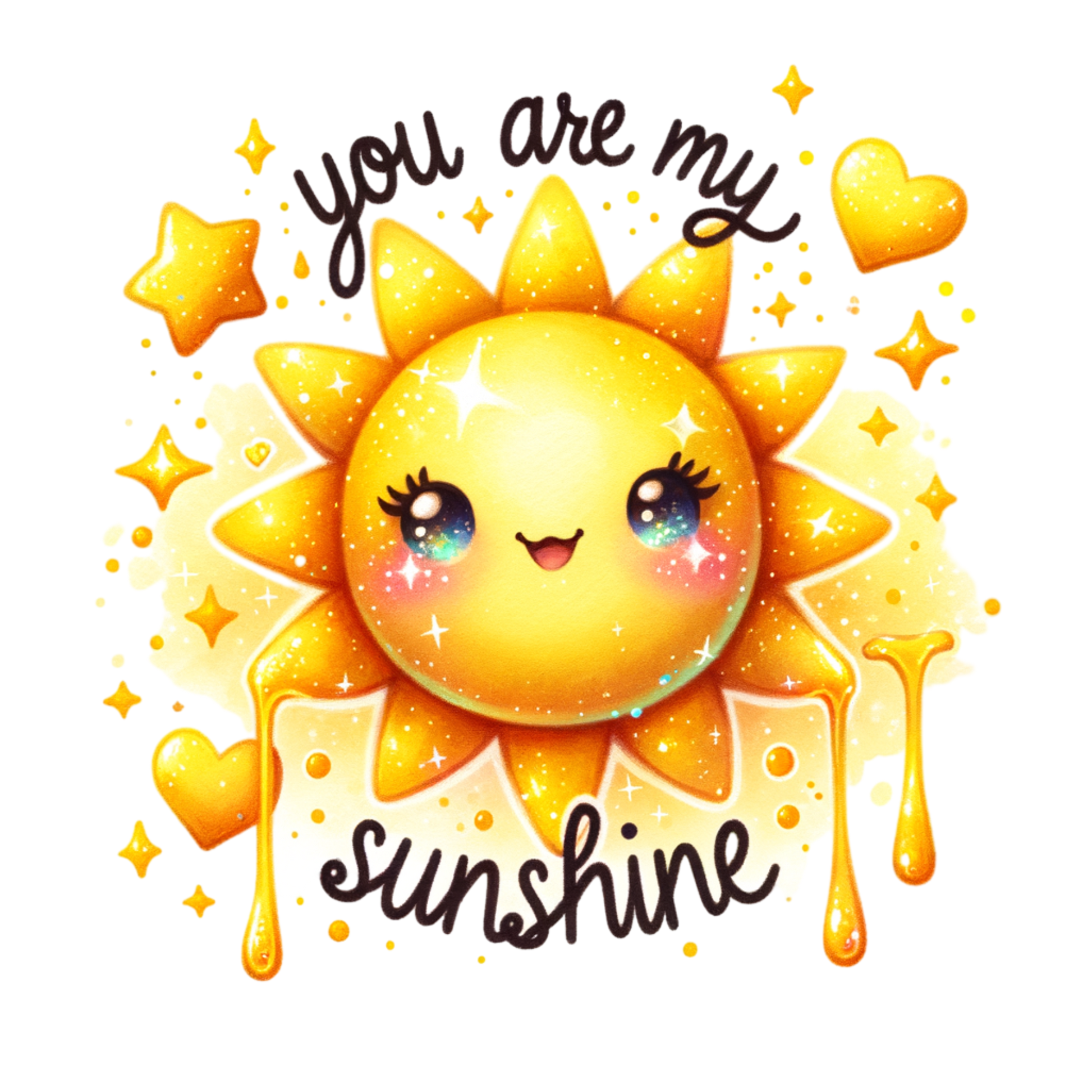 Brighten up your day (or someone elseβs!) with this sweet and sparkly "You Are My Sunshine" holographic sticker! Featuring a cute smiling sun surrounded by stars and hearts, this sticker radiates positivity and charm. With "You Are My" above and "Sunshine" below, it's the perfect way to spread some joy.